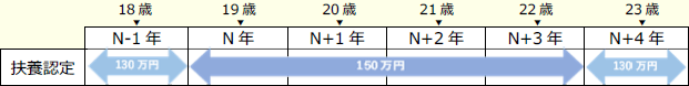 - 12月31日時点の年齢が22歳の年の翌年における収入要件については、年間収入130万円未満の要件が適用されます。